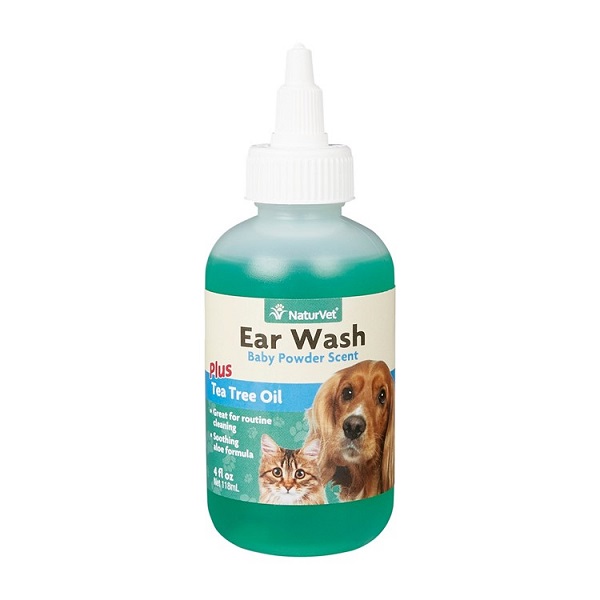 NaturVet Baby Powder Scent Plus Tea Tree Oil Pet Ear Wash - 4oz